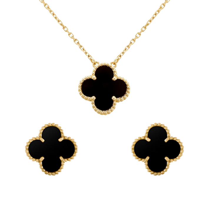 Med ett halsband och matchande örhängen är detta set inte bara ett smycke, det är en symbol för lycka, harmoni och positiv energi. Setet är tillverkat av högkvalitativa, vattentåliga material som håller länge och är bekväma att bära varje dag.