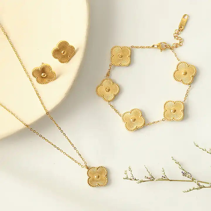 Ny guld fyrklöver halsband/armband/örhänge